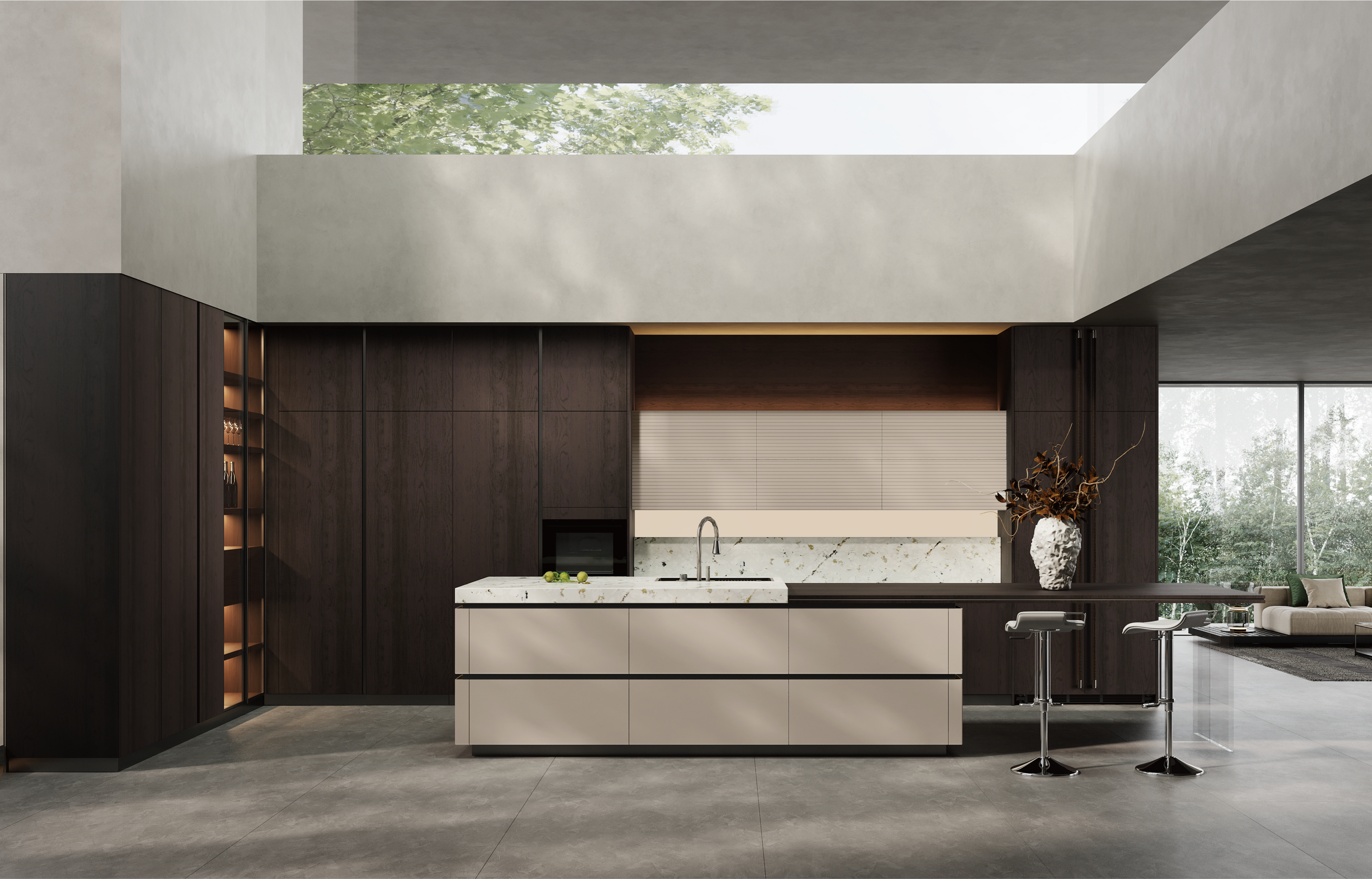 通过DB多宝视讯厨柜量体裁柜,定制出适合主厨下厨的烹饪区和洗涤区的舒适高度。